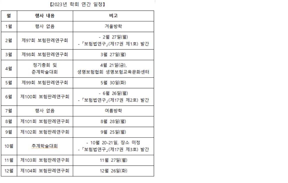 2023년 연간 학술 사업 일정